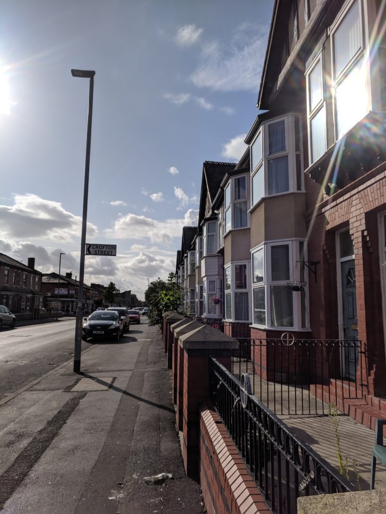 Domek, kde teď nějakou tu dobu budu přebývat, je, řekla bych, typicky anglický. To jest cihlový a vyšší než širší. Majitel Henry ve svém popisu domu konstatuje, že se jedná o „smartest house“ v dané oblasti. Smart v překladu znamená elegantní, vkusný (další význam je chytrý, inteligentní). Tedy, dům je údajně nejvkusnějším domem v dané čtvrti, s čímž musím souhlasit. Okolní domy skutečně nevypadají ani elegantně, natož vkusně. Na základě místního složení obyvatelstva (hodně muslimů a černochů) a skromně vypadajících domků se dá usuzovat, že Rusholme je spíše chudší čtvrť. Tuto domněnku potvrzuje i wikipedie, která uvádí: „Nízkonákladové řadové domy postavené mezi lety 1890–1930 dominují krajině, …“.