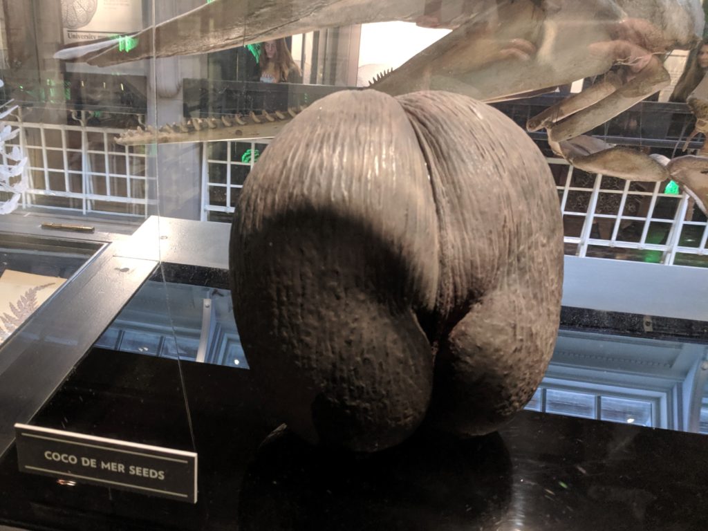 Lodoicie Seychelská je endemický druh palmy (jak název napovídá, roste jenom na Seychelách) a vyznačuje se tím, že má největší semena na světě. Ano, těmi semeny jsou myšleny ty divné kokosy (viz obrázek nahoře).