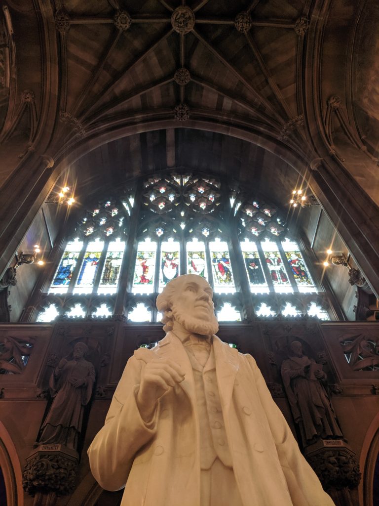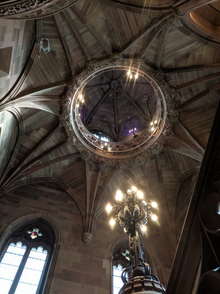 Včerejší den (tj. sobota 14. září) byl opravdu vydařený. Takhle krásné počasí jsem v Manchesteru ještě nezažila (pravda, nejsem tu moc dlouho). Celý den svítilo sluníčko, teplota lehce nad dvacet stupňů, ani jedna přeháňka. Proto by bývala ohromná škoda takovou přízeň osudu nevyužít a nejít prozkoumat krásy města Manchester. Tak jsme tedy vyrazila. Dnešní příspěvek věnuji knihovně Johna Rylandse. Navštívila jsem více míst, ale o nich někdy příště.