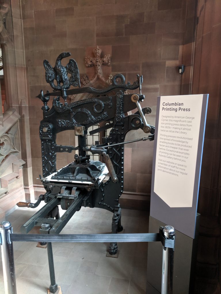 Asi by nebylo úplně od věci, si nejdřív povědět, kdo to vlastně John Rylands byl. John Rylands (1801–1888) byl anglický podnikatel a filantrop (tj. někdo, kdo daruje čas, peníze či jiný svůj majetek na charitativní účely, většinou má významný vliv na zlepšování obecné kvality života). John Rylands byl vlastníkem největší výrobny textilií ve Spojeném království a stal se prvním multimilionářem v Manchesteru. Po jeho smrti jeho manželka Enriqueta Rylands na jeho památku založila Knihovnu Johna Rylandse. Tuto pozoruhodnou gotickou stavbu navrhnul architekt Basil Champneys v roce 1889 a trvalo deset let, než byla dostavěna a otevřena veřejnosti. V roce 1972 se knihovna stala součásti Univerzity v Manchesteru a nyní uchovává speciální sbírky univerzitní manchesterské knihovny. Jedná se o třetí největší akademickou knihovnu v UK.