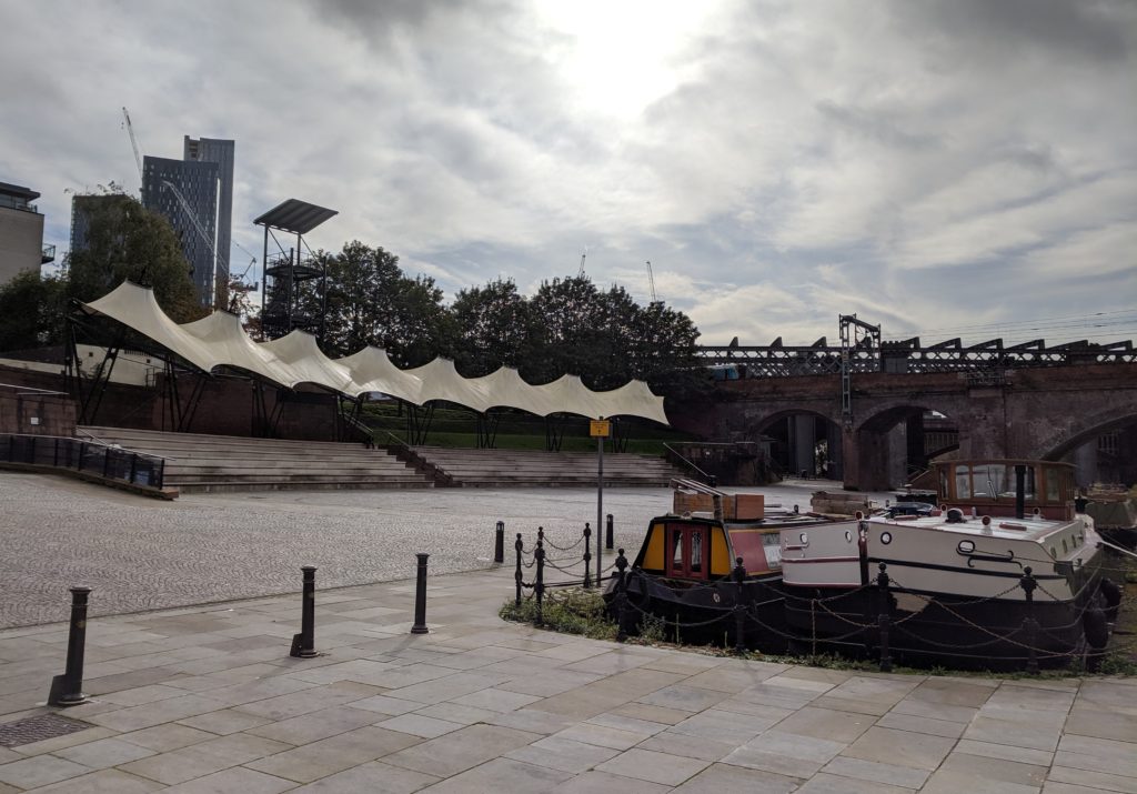 Kousek od parku se nacházel kanál Bridgewater Canal, tak jsem se tam zašla podívat a pořídila pár fotografií. Kanál se nachází v oblasti Castlefield a prakticky hned vedle kanálu je umístěná venkovní aréna/pavilon Castlefield Bowl, kde se konají různé koncerty nebo se zde pořádá festival jídla. Zahráli si zde umělci/kapely jako Arcade Fire, Catfish and the Bottlemen, The Verve, Blink 182 nebo Rag’n’Bone Man (dle hodné tetičky Wikipedie).